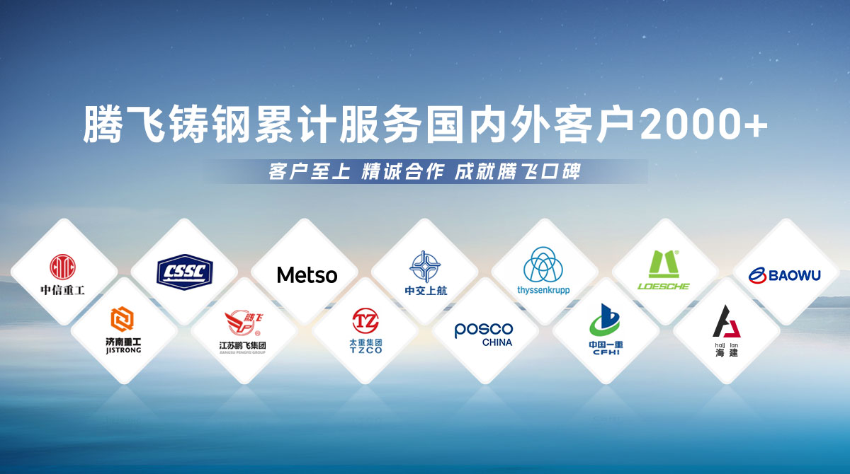 多年來,長期服務于中信重工、中船重工、美卓、上海中交、萊歇、江蘇鵬飛等國、內外建材、冶金、鍛壓、橡膠行業(yè)知名企業(yè),為其提供上萬件裝備配套優(yōu)質鑄鋼件。是國家級大型水電工程定點鑄鋼件生產基地,為大藤峽水利樞紐工程、白鶴灘水電站提供優(yōu)質鑄鋼件。